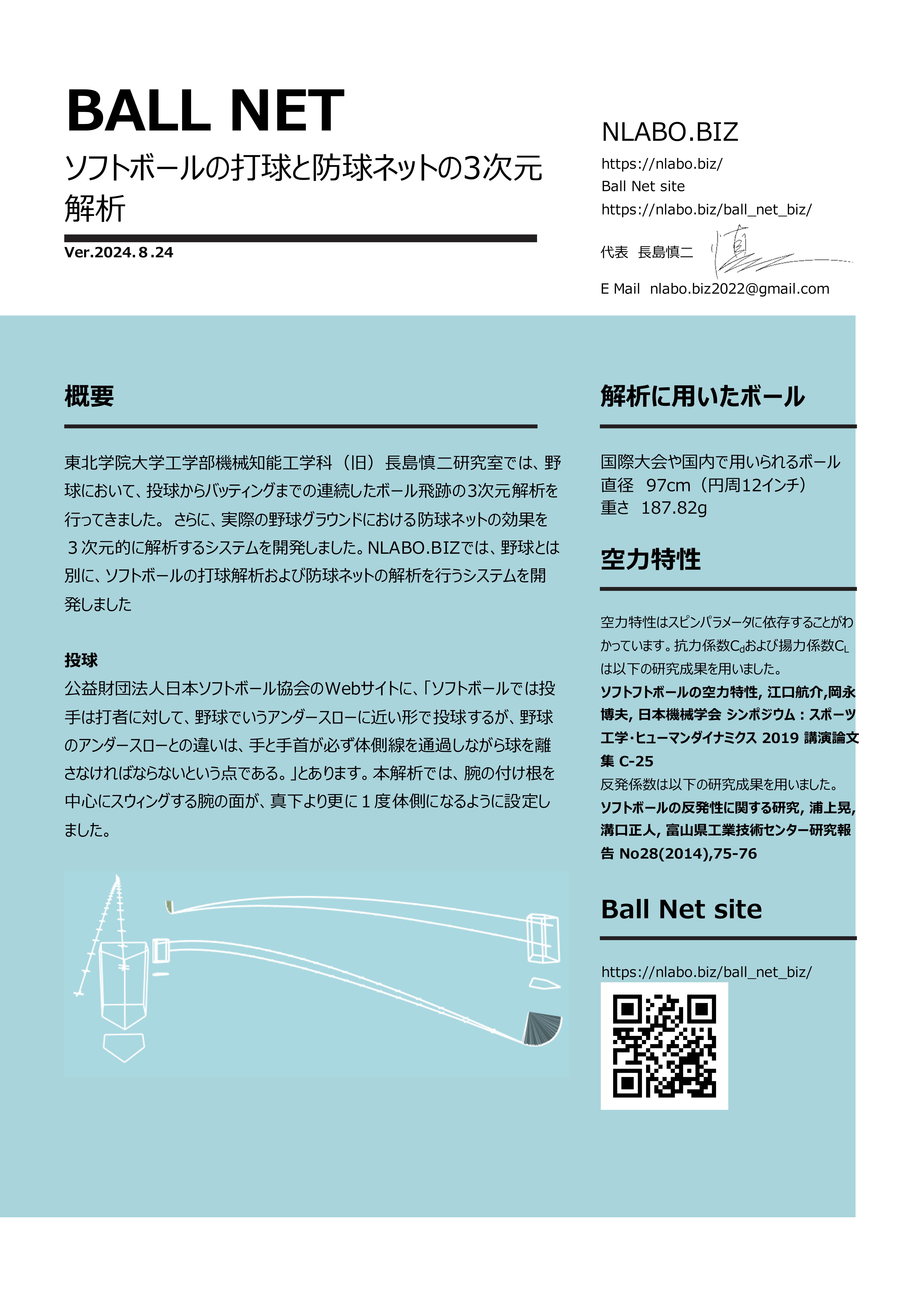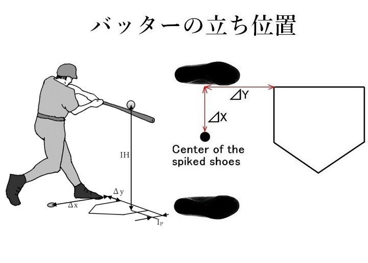 軟式野球打球解析について ソフトボールの打球解析と防球ネット解析 ここでは、理論の一部を紹介しました。投球は、腕のスウィング面やスウィング角度の設定、加えて、ボール回転軸などの設定その他があります。バッティングは、そもそも、投手とバッターの間のどの面でインパクトするかはバッターが決めることで、その際に、その面を通過する投球とバッターの立ち位置の関係、その他から、バットの角度などが決まります。更に、バット断面のどの位置でボールを捉えるかも重要なパラメーターになります。結果として打球の初速度や方向が決定されます。更に、打球の回転軸や回転数などによる流体力も受けて打球飛跡が算出されます。
