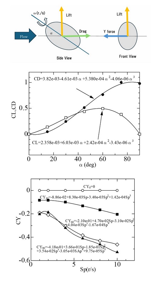 本飛球シミュレーターは、上記の論文で明らかにされた空力特性の実験結果によるものです。